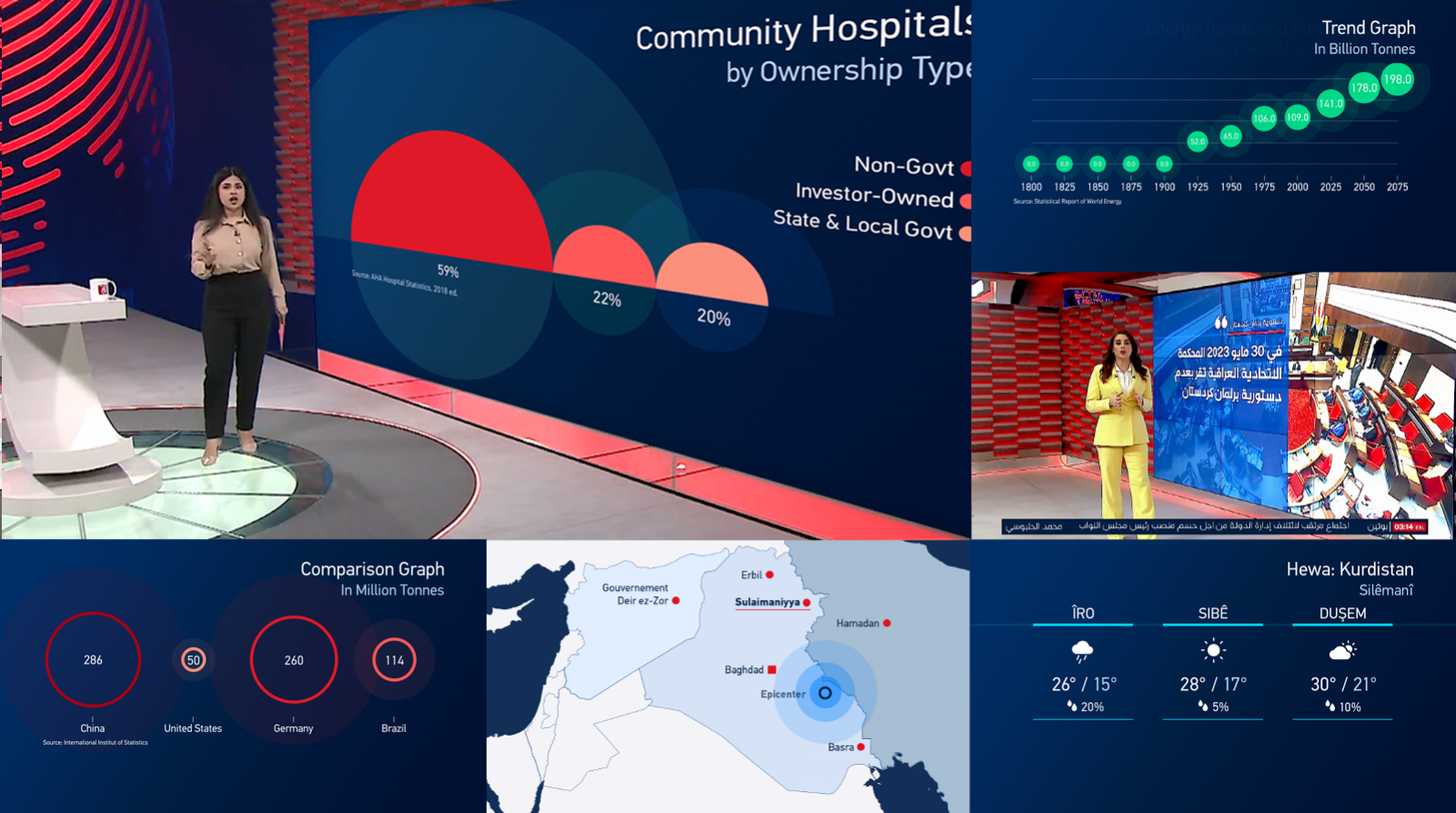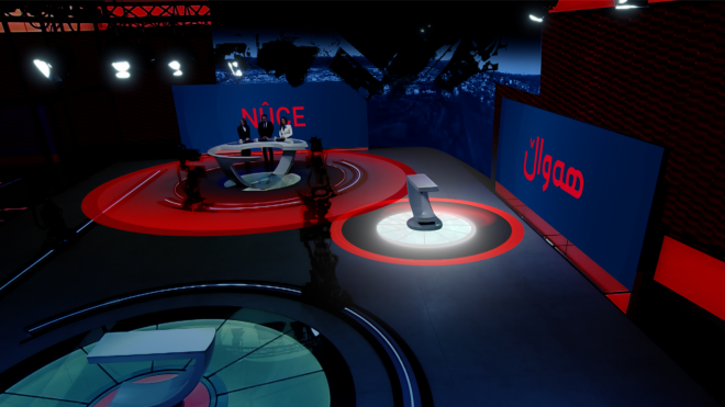 The state-of-the-art studio, featuring advanced technology, acts as a "canvas" for graphics, providing extensive capabilities for live presentations and incorporating augmented reality.